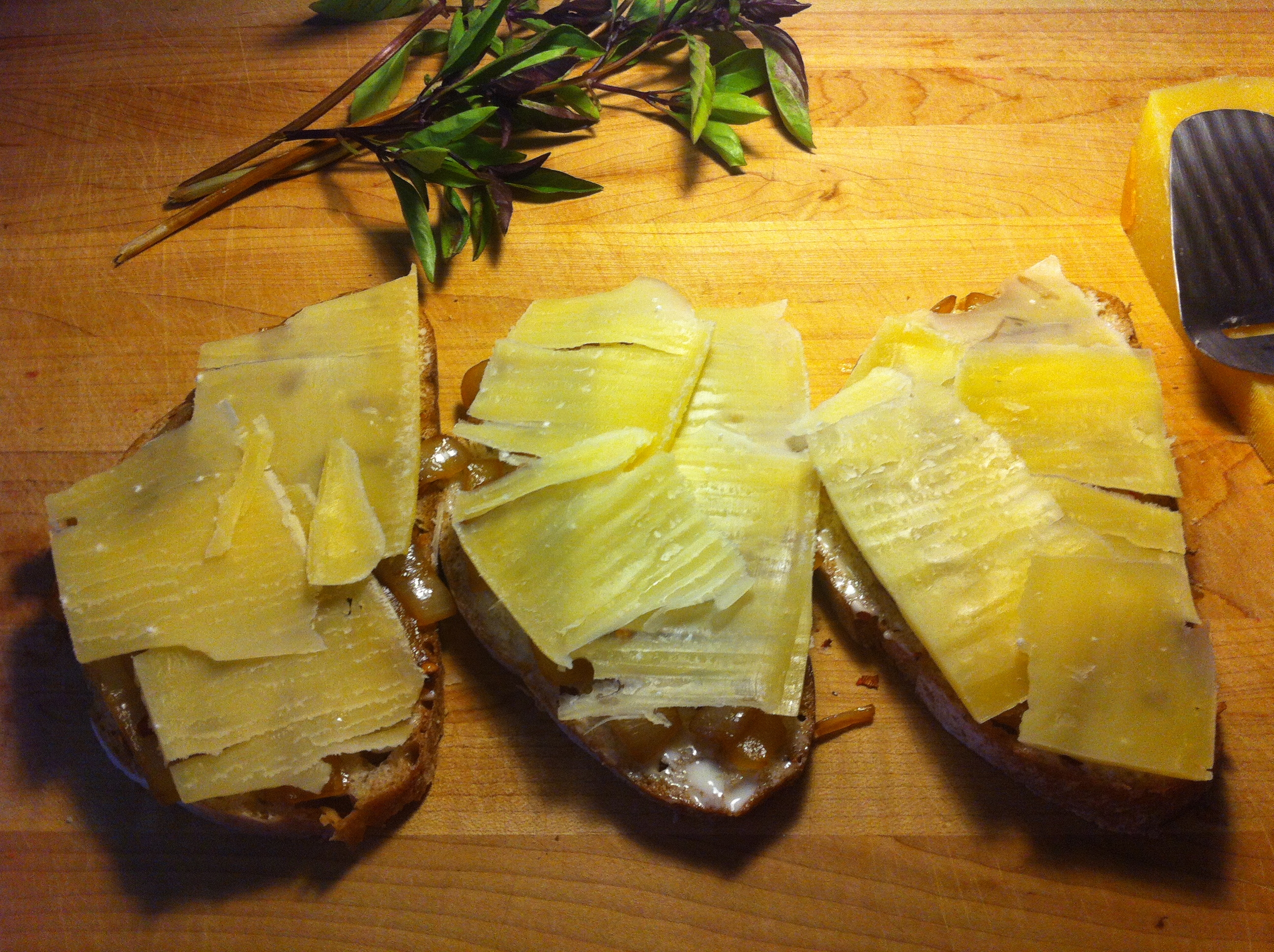 These cheese toasts are great with any kind of strong hard cheese and pair well with tomato soup.