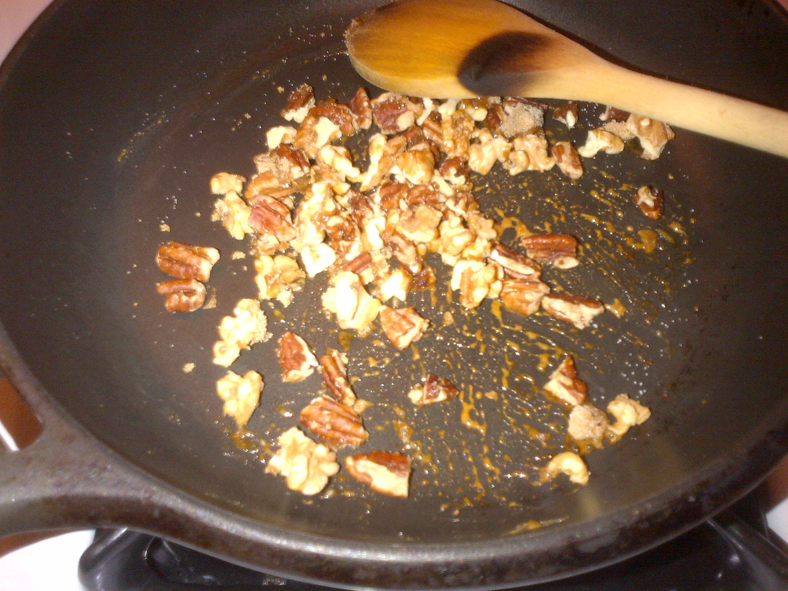 - Heat nuts in a non-stick skillet over medium heat until they begin to get a little toasty.