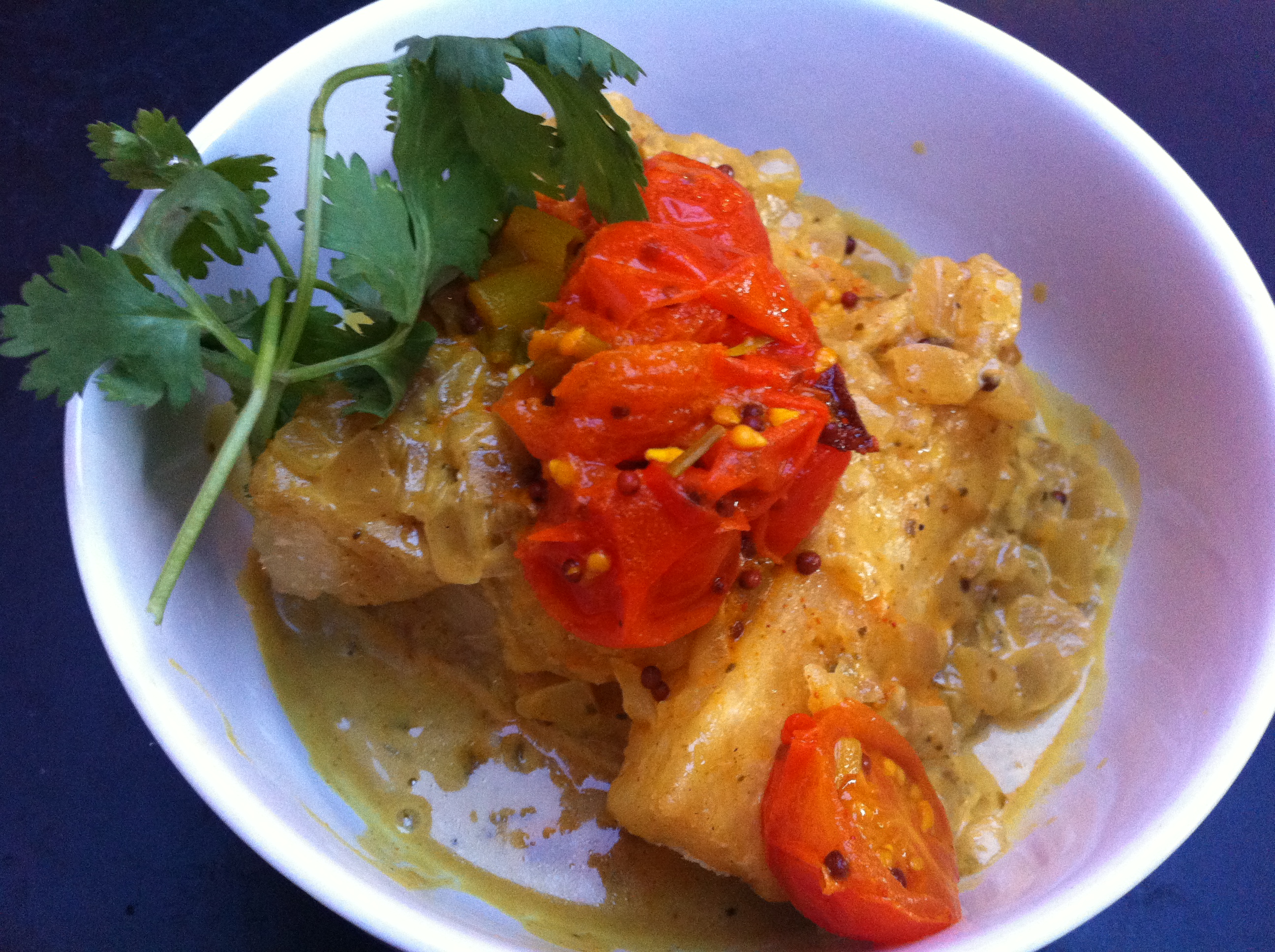 And some scrumptious curried yuca fries, with an incredible curry sauce. I loved the onions in the curry, and the pickled tomatoes on top!