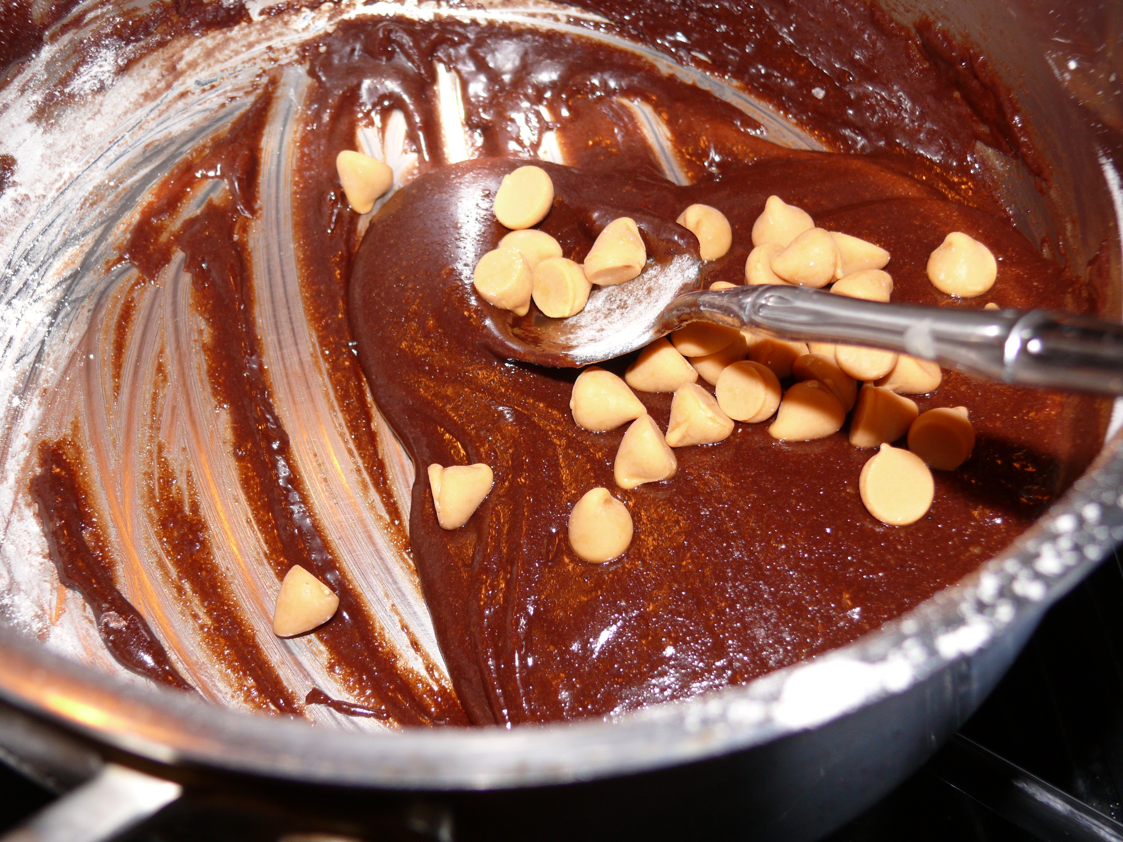 - Add butterscotch chips if you feel like it. Or chocolate chips. Or nuts, but I have never understood nuts in brownies!