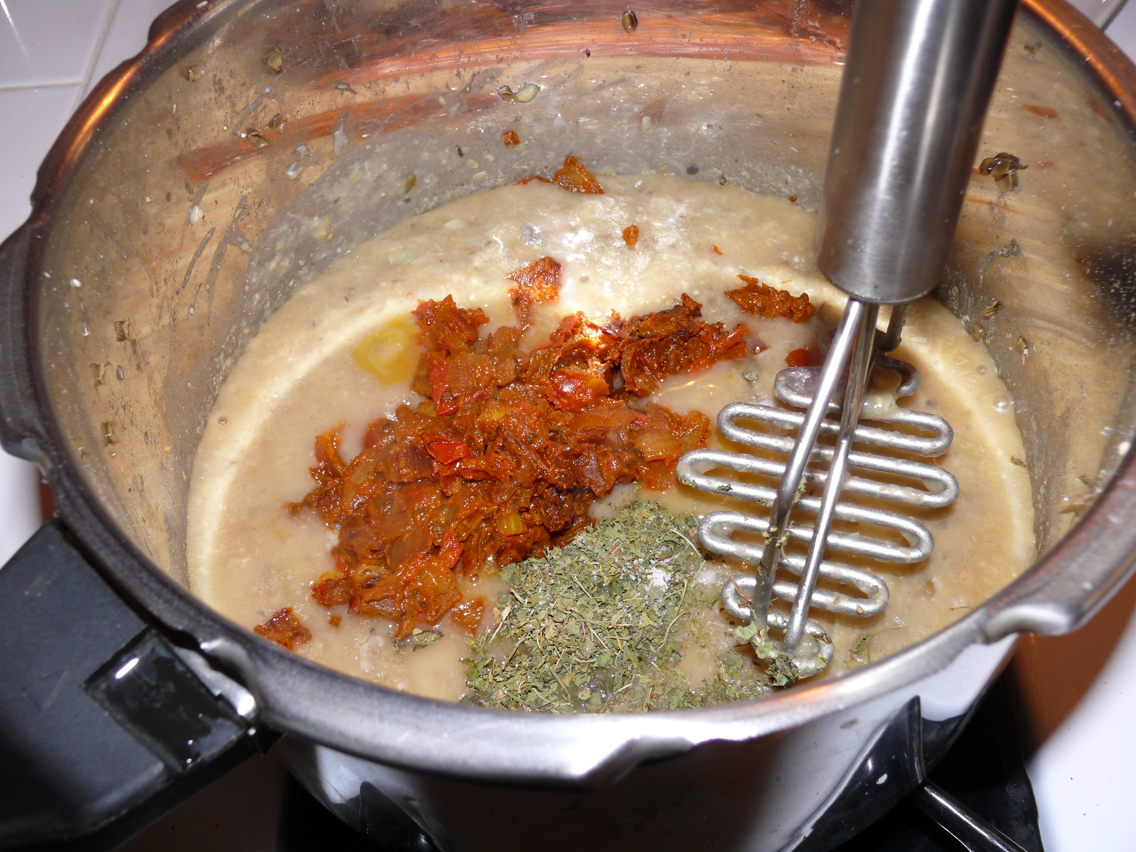 - Meanwhile heat the olive oil in a saute pan and add the cumin. Once they brown, add the onion and saute until translucent.