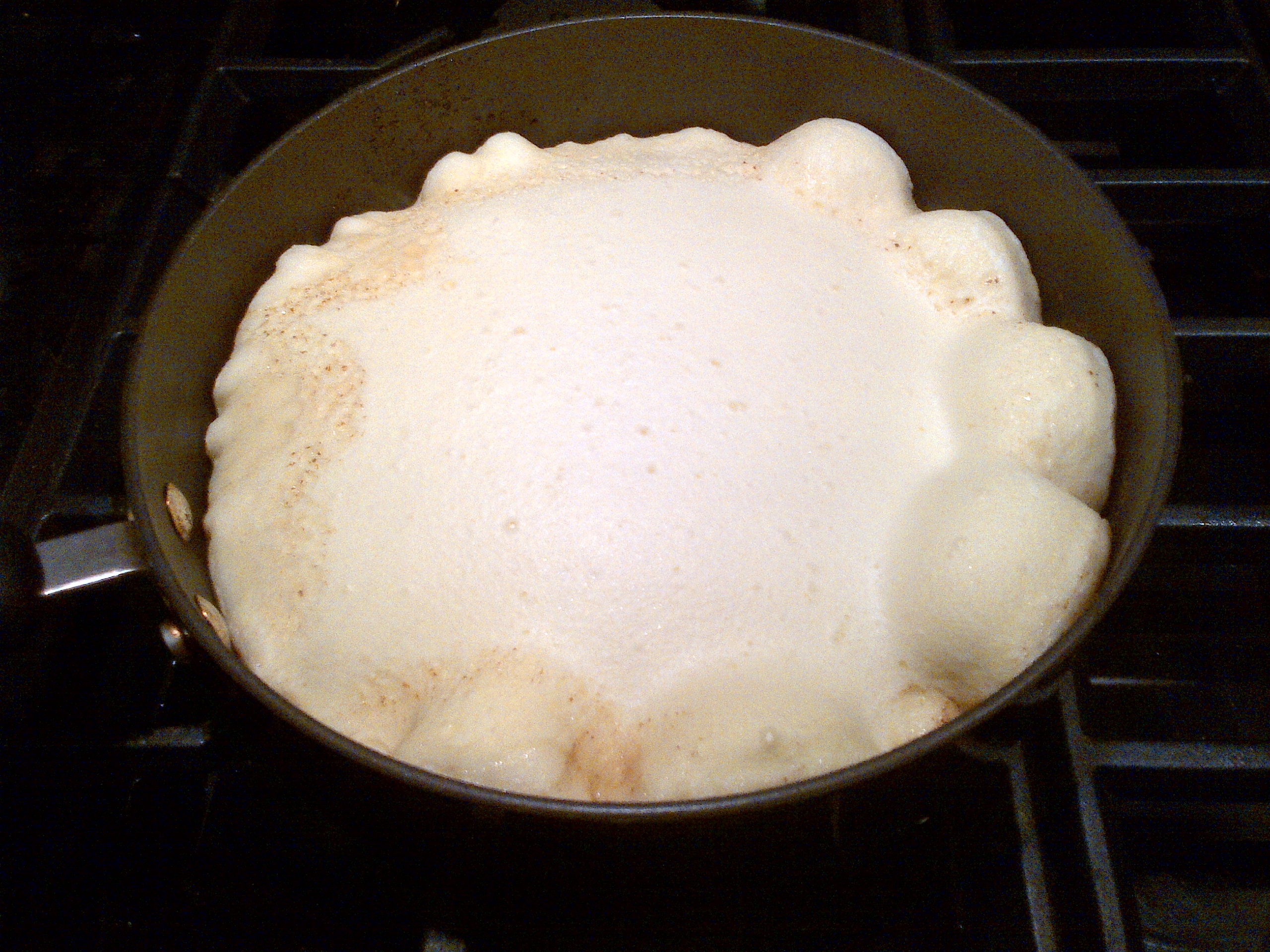 - Pour in the batter, lower the heat slighly and cover.