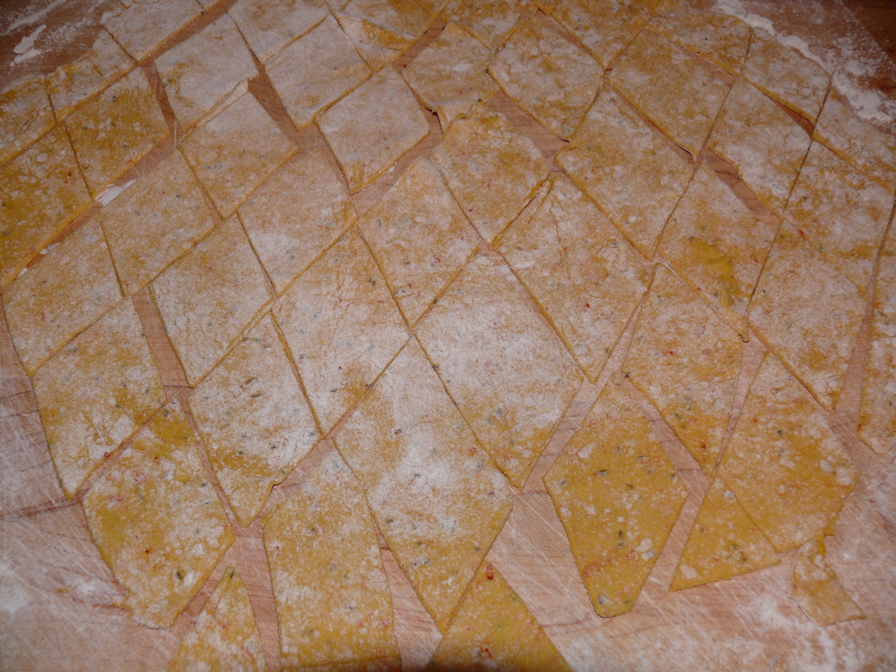 - Roll out the dhokli dough on a floured surface until really thin. Cut into diamond shapes and lower each piece into the boiling dal carefully. Cook for 5-10 minutes only stirring very lightly so you don’t break the dhokli to much. Garnish with cilantro.