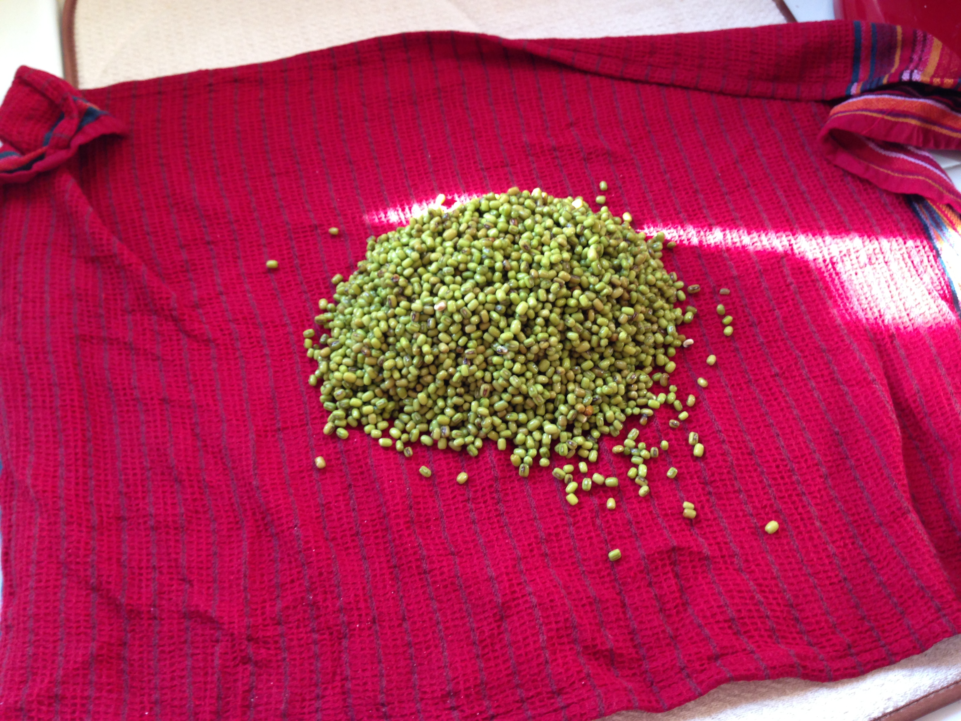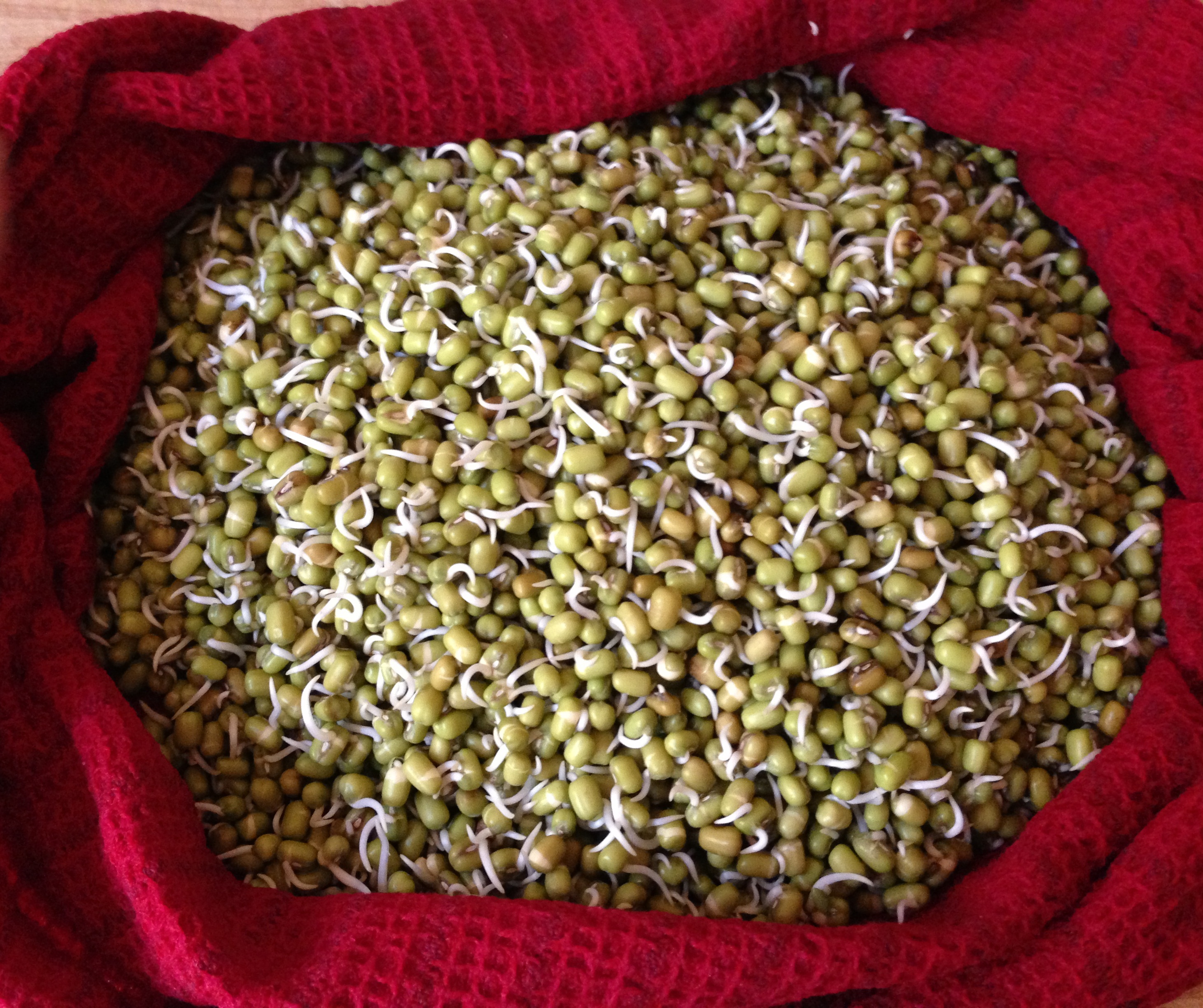 I don’t like the raw taste of just the sprouts so I usually saute or boil a little to take the raw taste away. They make a great additional to Indian snack foods called chaat, especially pani puri. To get the mung beans lightly sprouted it took about 48 hours. You could keep sprouting them and rinsing them for 5-7 days until they become what we normally call bean sprouts!