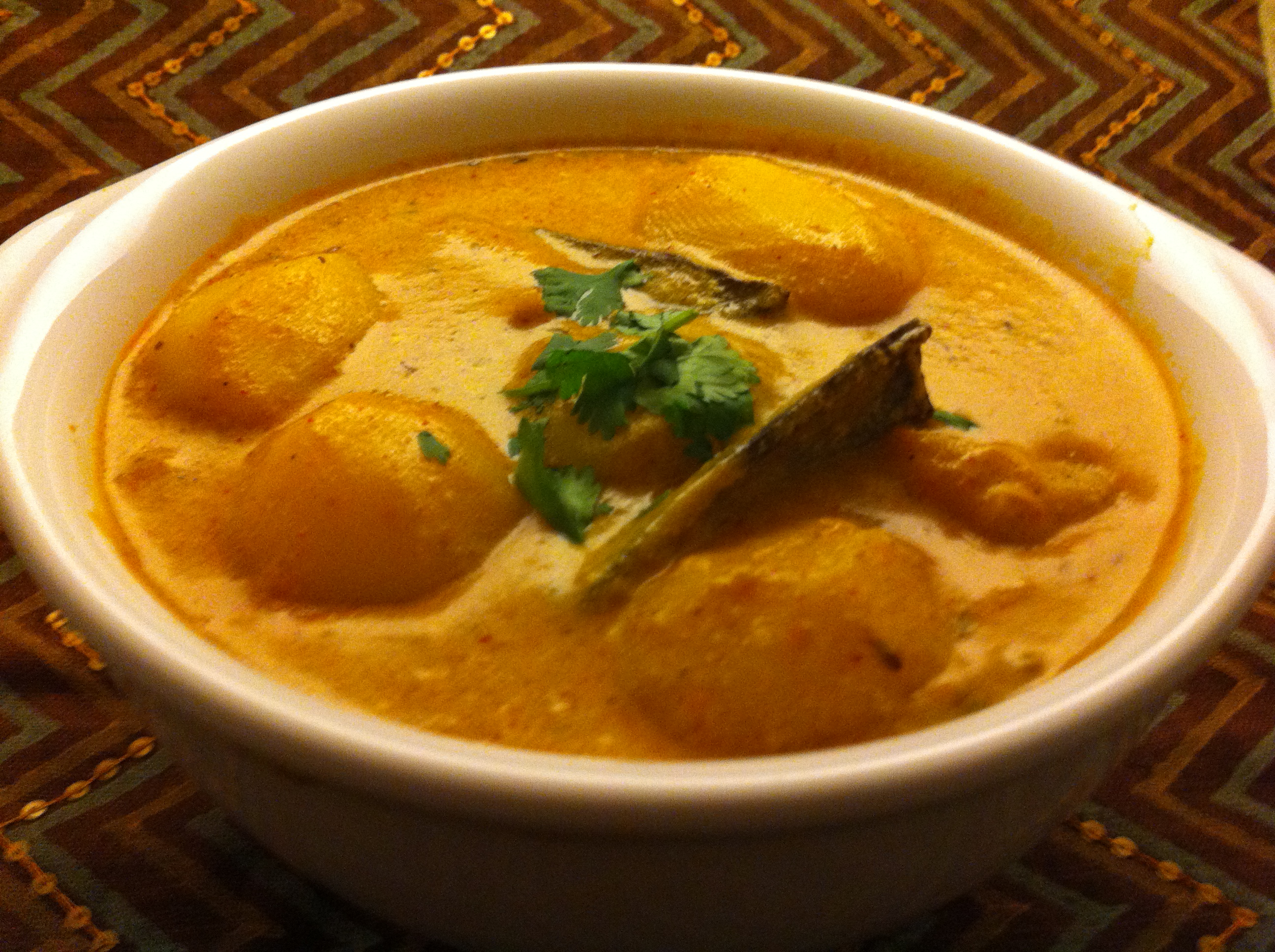Kashmiri Dum Aloo because it is rich and slightly tangy, and I especially love that the ingredient list is a little outside of what we normally use: ground fennel, ground ginger, and cashews.