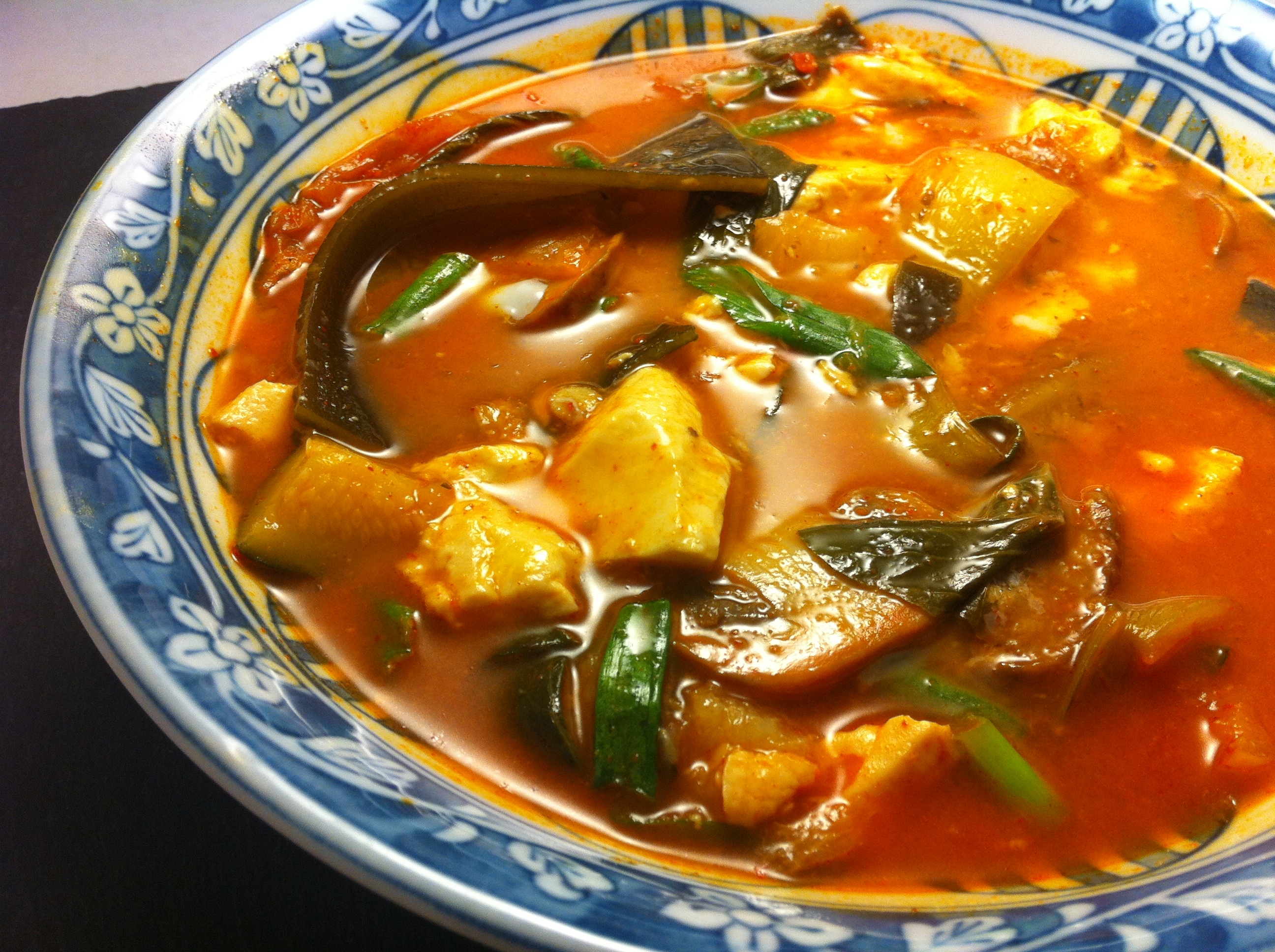Soondubu Jjigae Korean Tofu Stew because even though it is a soup, the intense broth and raw egg added at the last moment, make it extremely satisfying especially on a cold day.