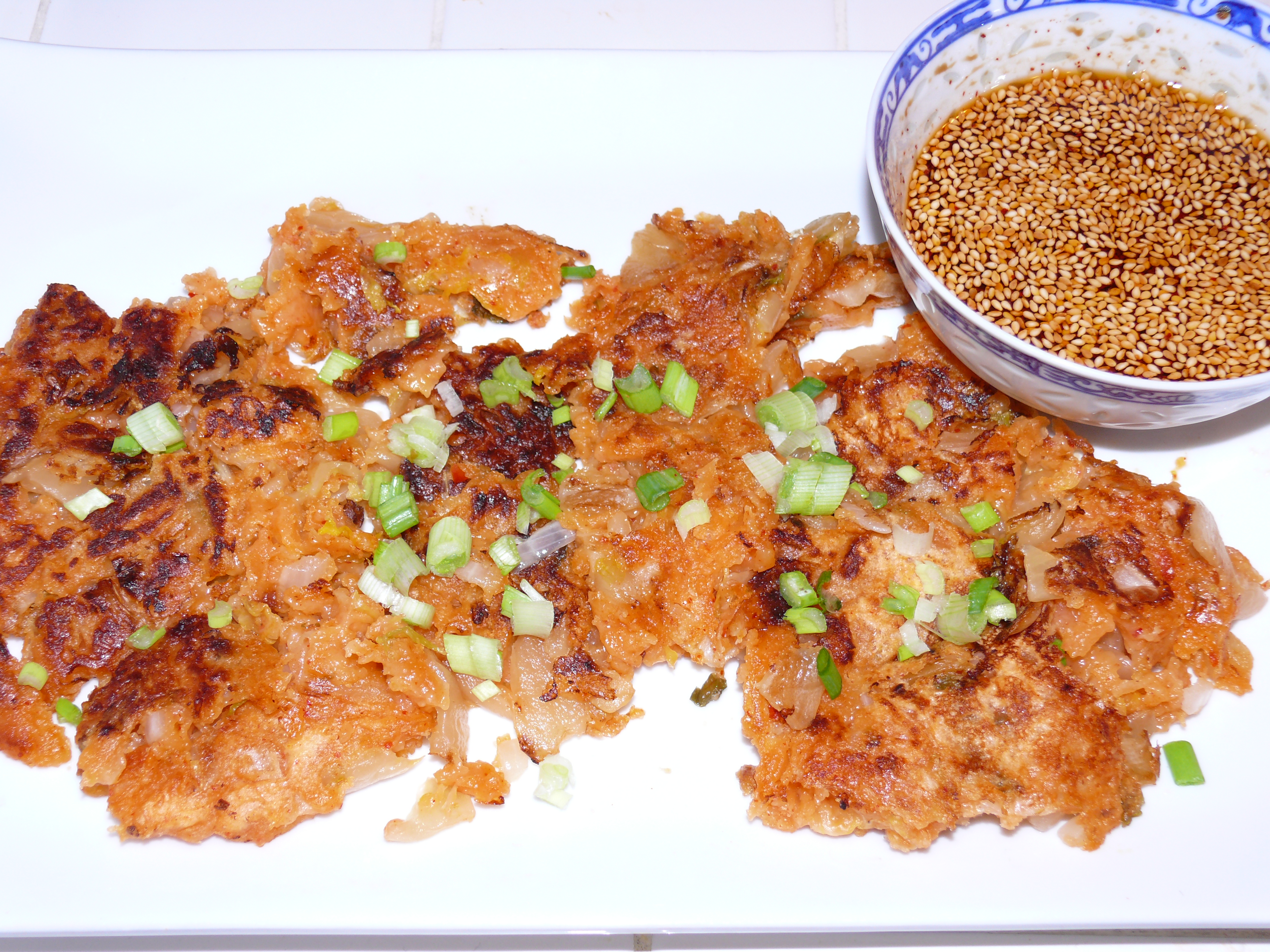 I am loving Korean food these days. I tried this recipe on Maangchi last night. Mmm! This recipe is very tangy. I’ve had kimchi pancakes that were more pancake-y and less kimchi-y. I like both kinds!