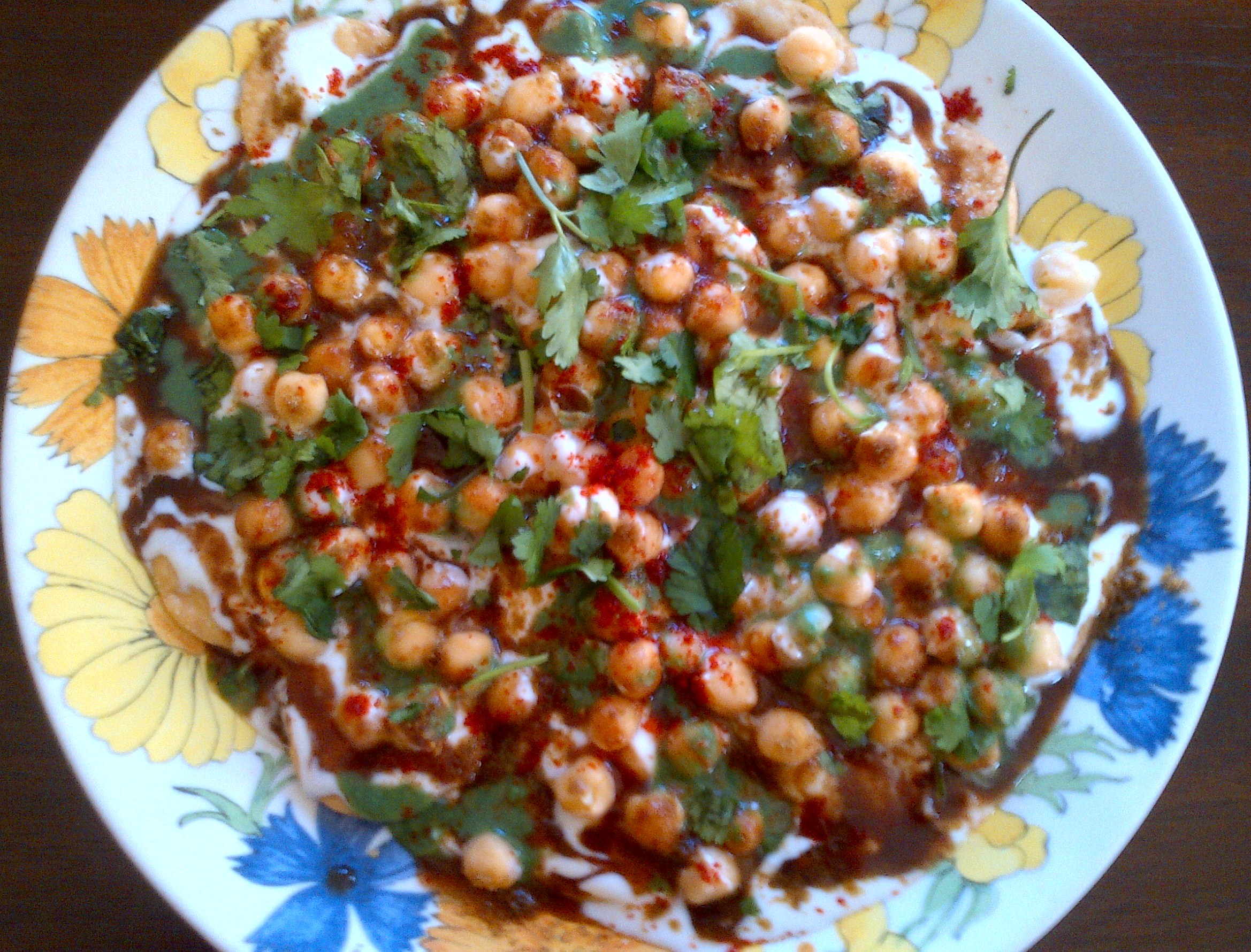 When I first tried an Indian snack food called dahi puri, it was like I had stepped into heaven. Each bite was a burst of flavors and textures–savory, sweet, spicy, fresh and crunchy, all at the same time. Dahi puri is one of a multitude of Indian snack foods called chaat. I love every type of chaat I have tried so far: dahi puri, papri chat, pani puri, sev puri, bhel puri…