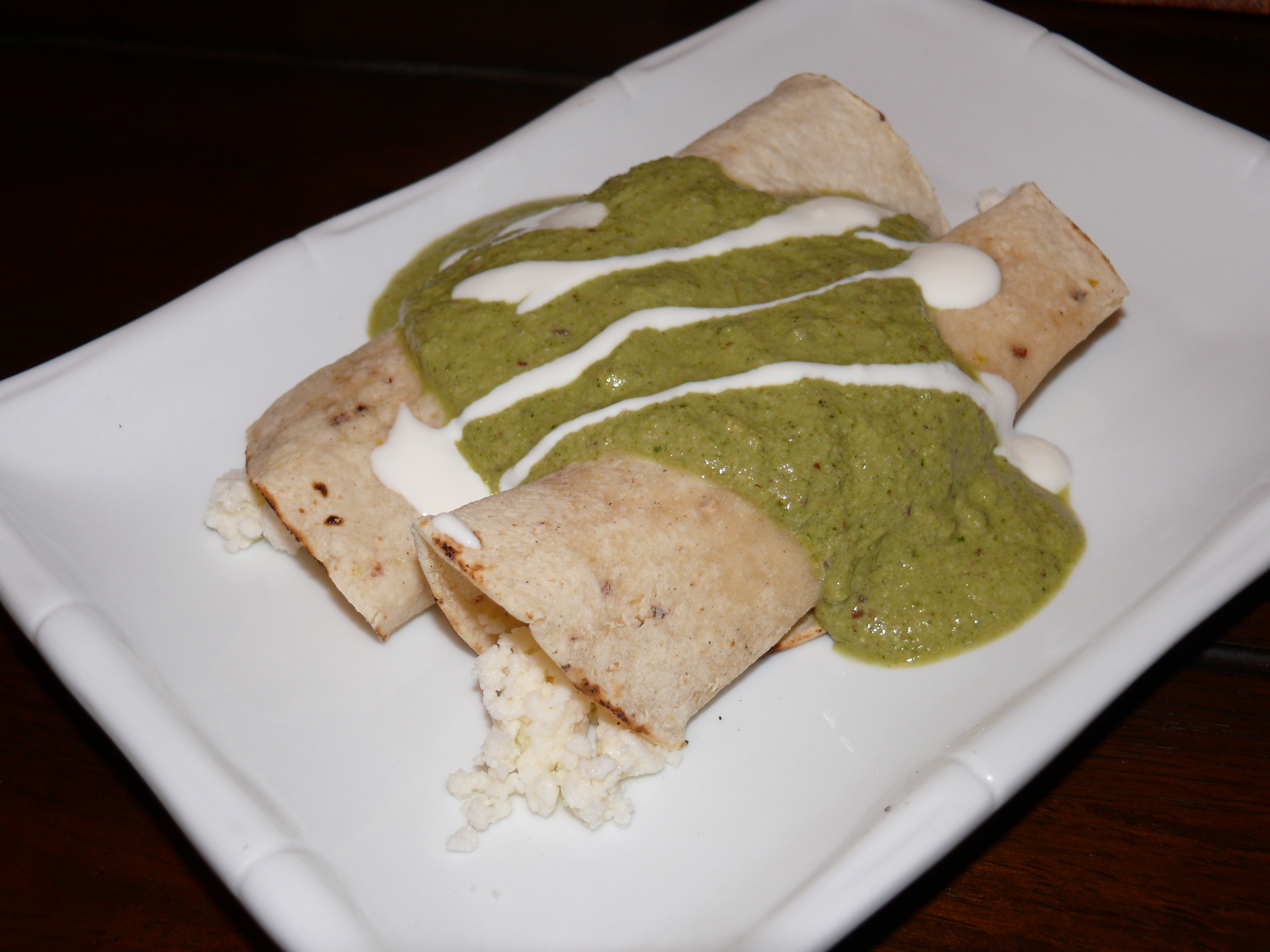 Mmm, mole. Rich and loaded with toasted pumpkin seeds and cilantro, it goes well with grilled vegetables, enchiladas, and even drizzled (or poured!) on tacos. We had it with queso fresco enchiladas and another time with grilled veggie tacos. Recipe is adapted from Leite’s Culinaria.