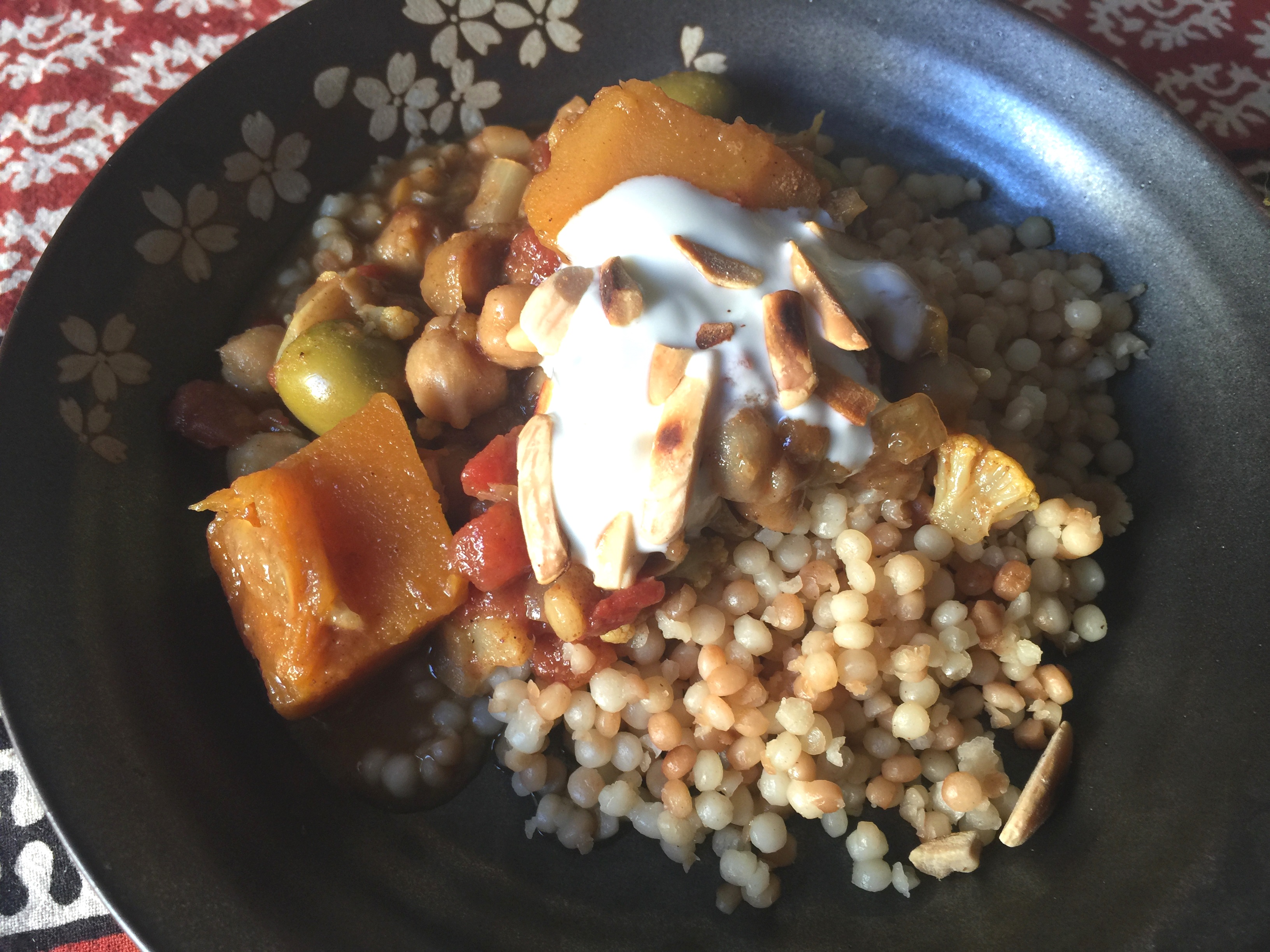- Serve with cous cous, toasted slivered almonds and plain yogurt.