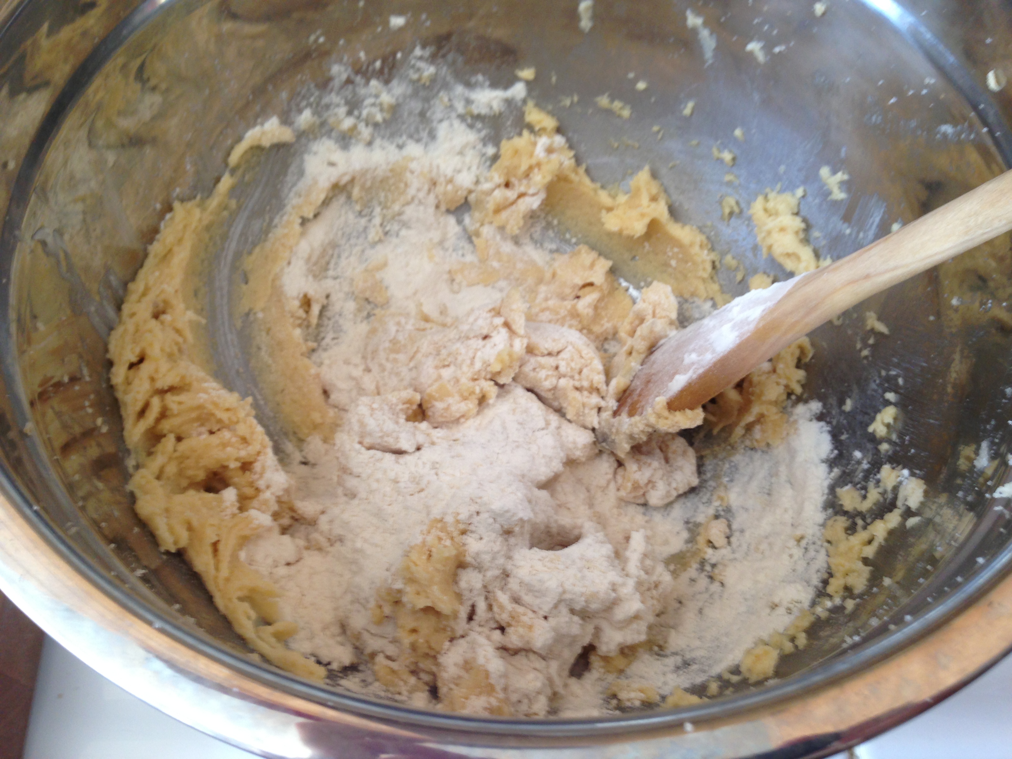 - Add the flour mixture and mix well.