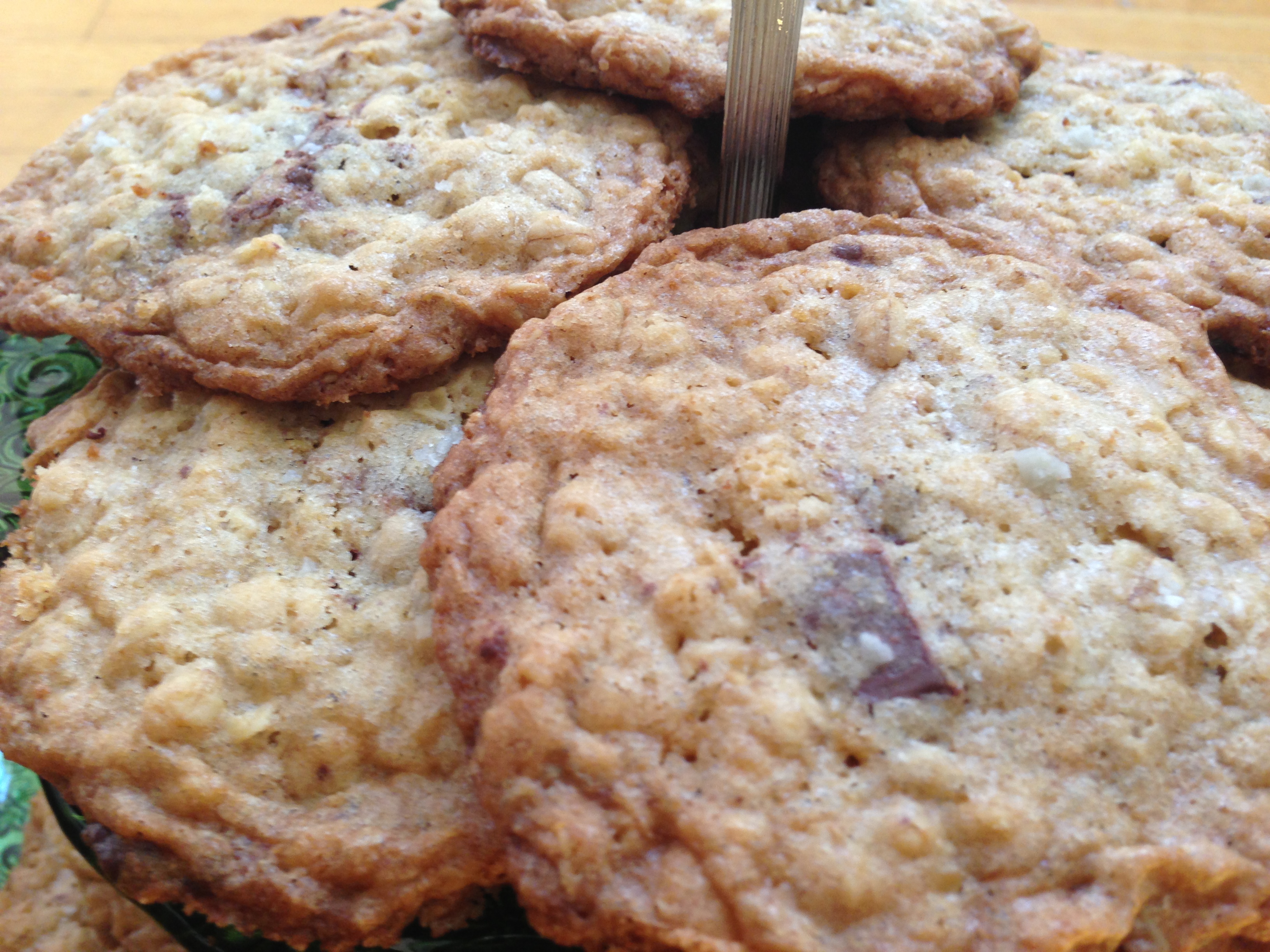 I am in baking dessert mode and my favorite recipe blog for baking is Smitten Kitchen. For this recipe I used Smitten Kitchen’s crispy salted oatmeal white chocolate cookie recipe. I was craving dark chocolate, so I used a Ghirardelli semi-sweet baking chocolate bar.