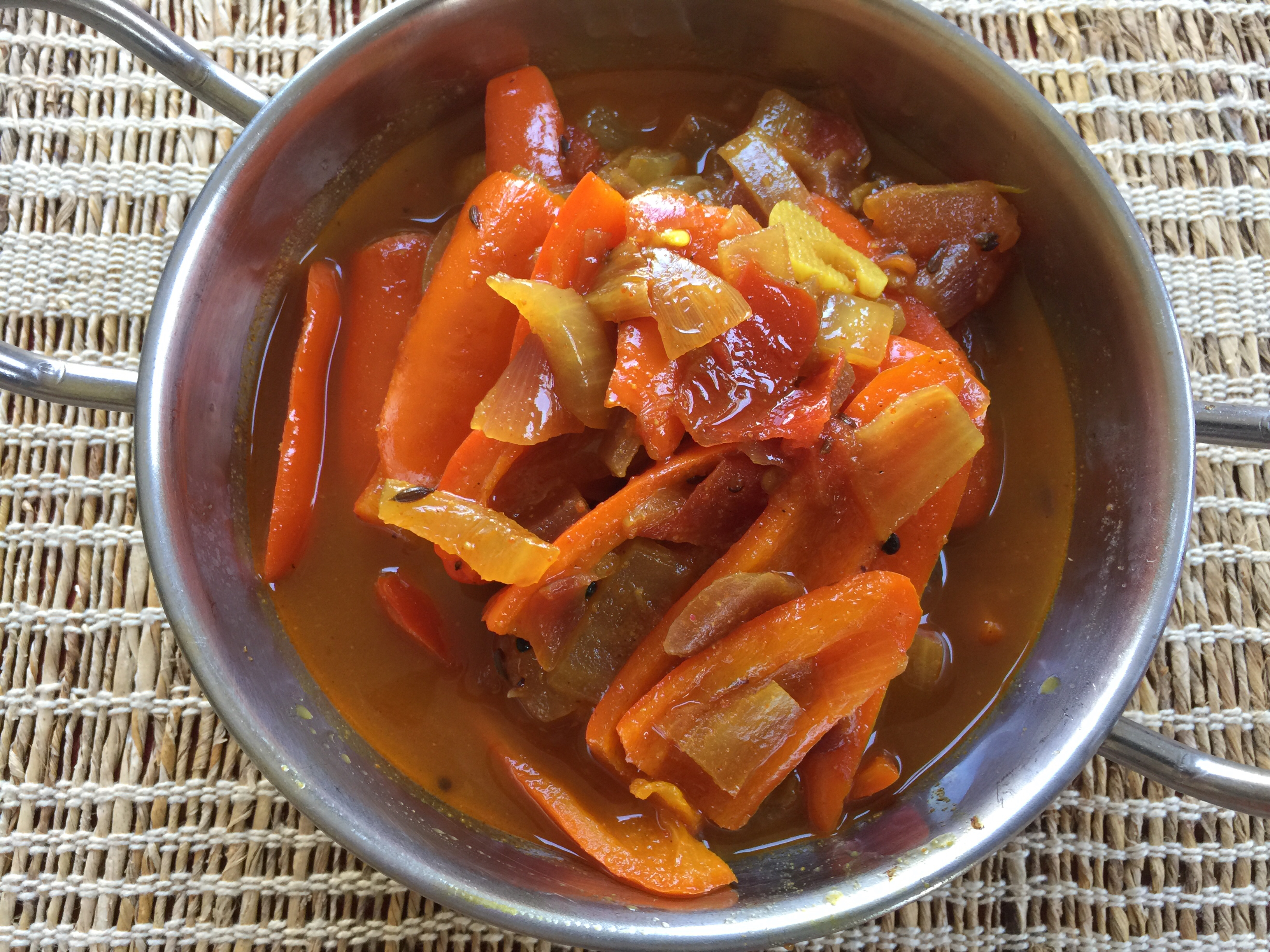 My first new recipe since I’ve become a mom! Red bell pepper curry! For a while I thought I might never blog again, but I think I will, just maybe not as often. I also have a bunch of older recipes still to post that I need to get around too. Suddenly even just posting a recipe is time I might not have! 🙂