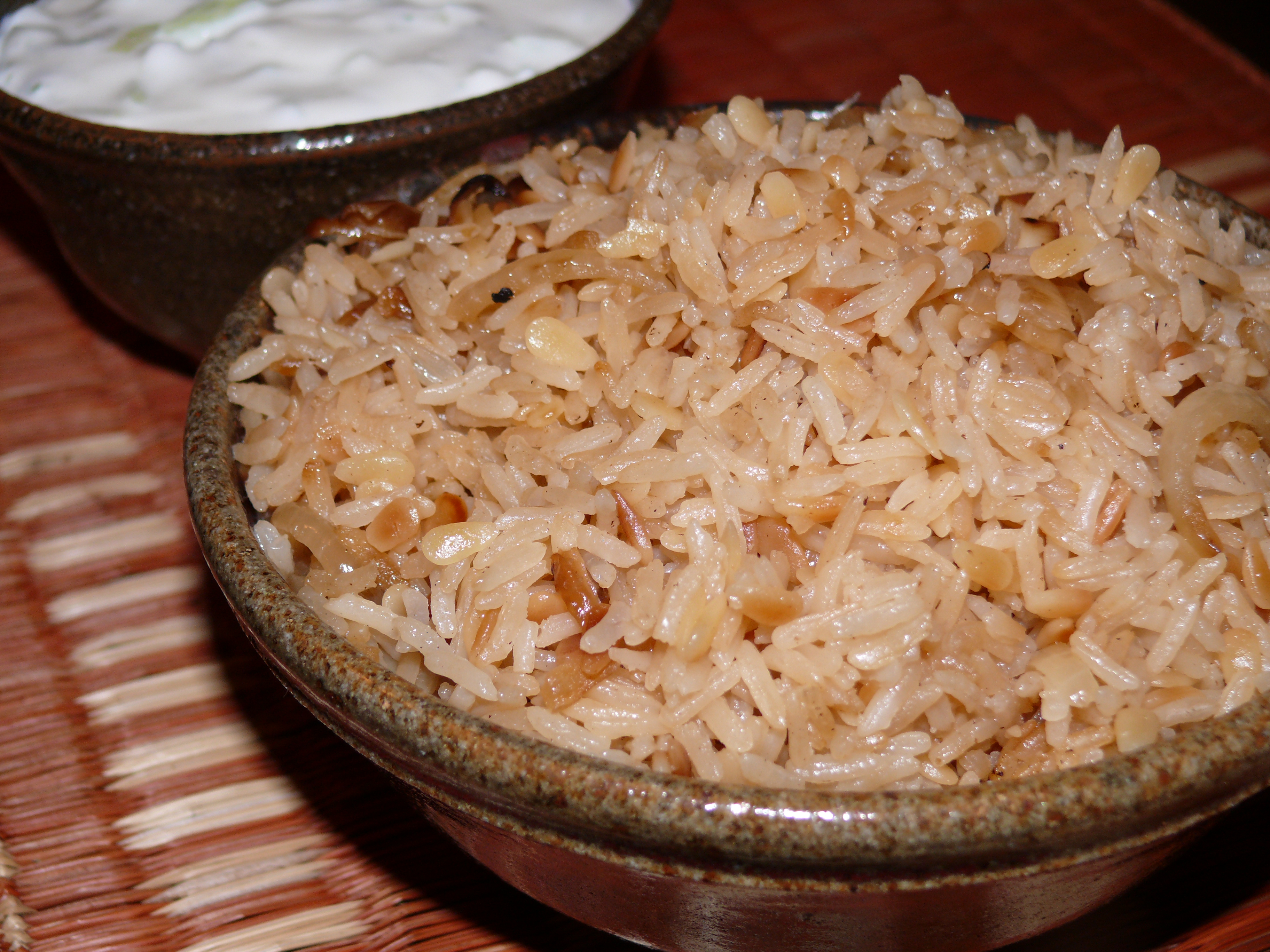 I love pilaf with kabobs or falafel, yogurt sauce and green salad with tomato, onion and a lemony dressing! I think of rice pilaf as rice cooked with little noodles, but I think it actually means more just flavored rice. This recipe gives you both. I don’t use broth, but I think that the butter and onion flavors the rice perfectly.