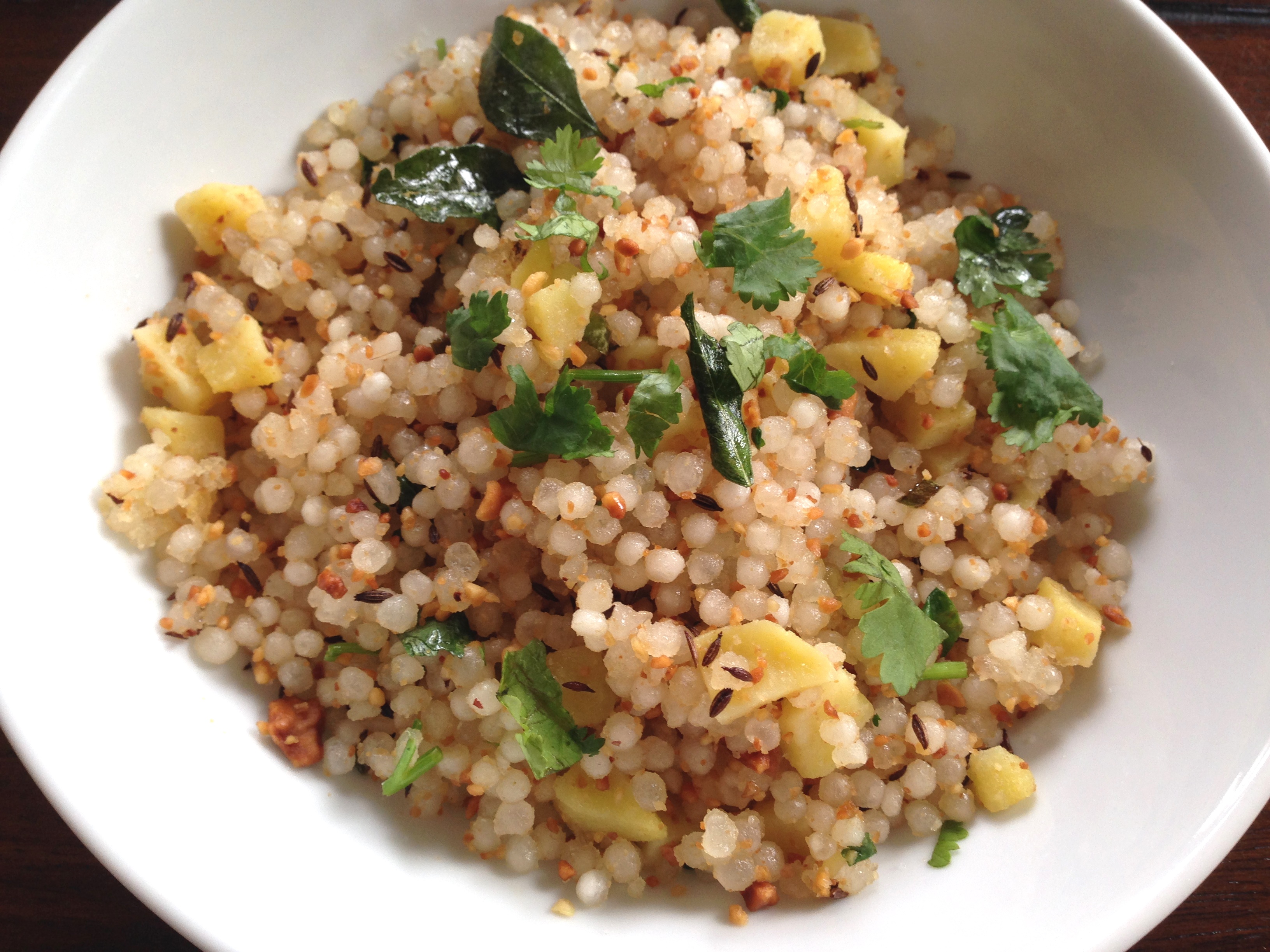Love sabudana khichdi! It’s such an funny Indian breakfast made with sabudana, which are these little tapioca pearls that you cook with peanuts, potatoes and spices.