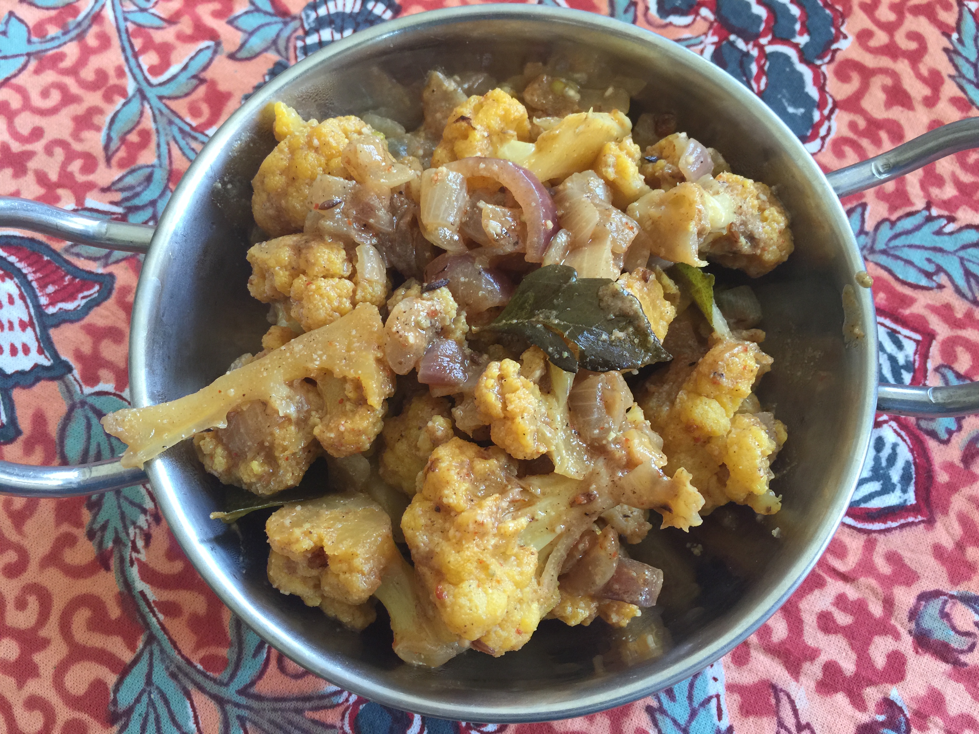 I completely thought I had blogged this recipe for cauliflower kurma before, but this morning I was looking for it on my blog and it wasn’t there! Thank goodness I found the recipe and can blog it now since it is delicious. Unfortunately, the print out I have of the recipe doesn’t contain the source.