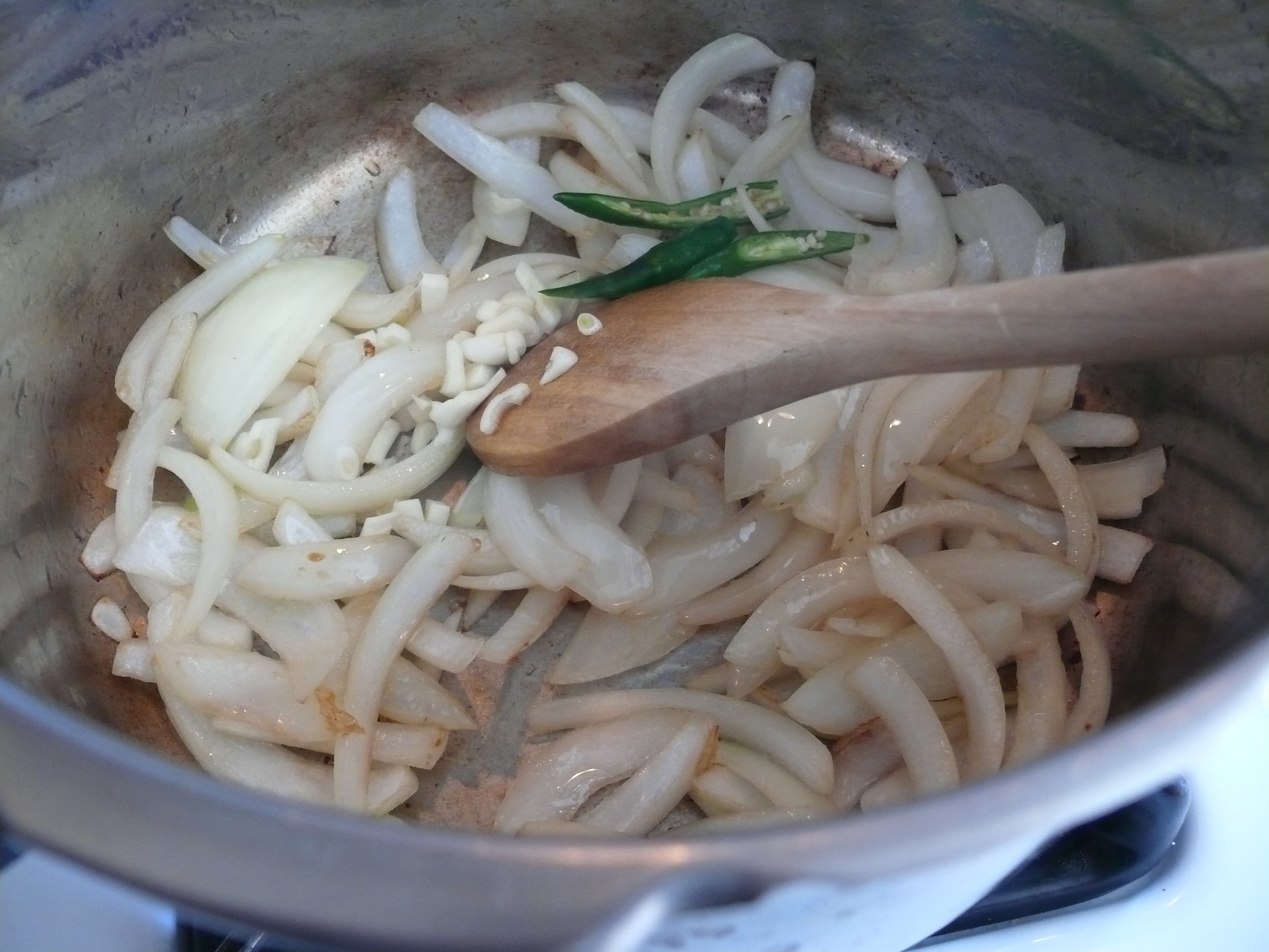 Step 5: After a couple of minutes, add your garlic and green chilis