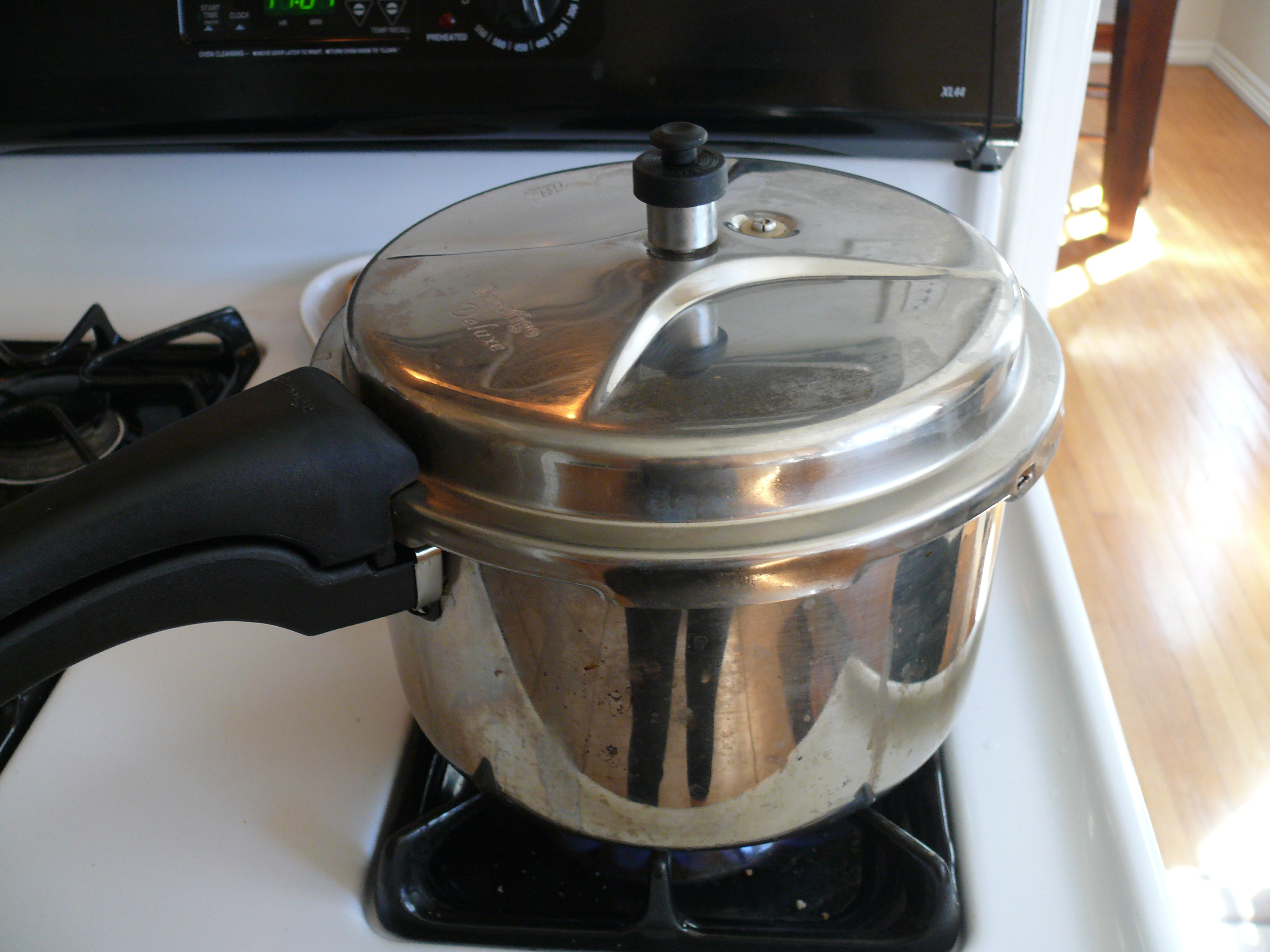 Be really careful to not open the cooker until all the steam has escaped! The easiest way to do this is to place the pressure cooker under cold running water and lift the weight slightly to let the steam come out.