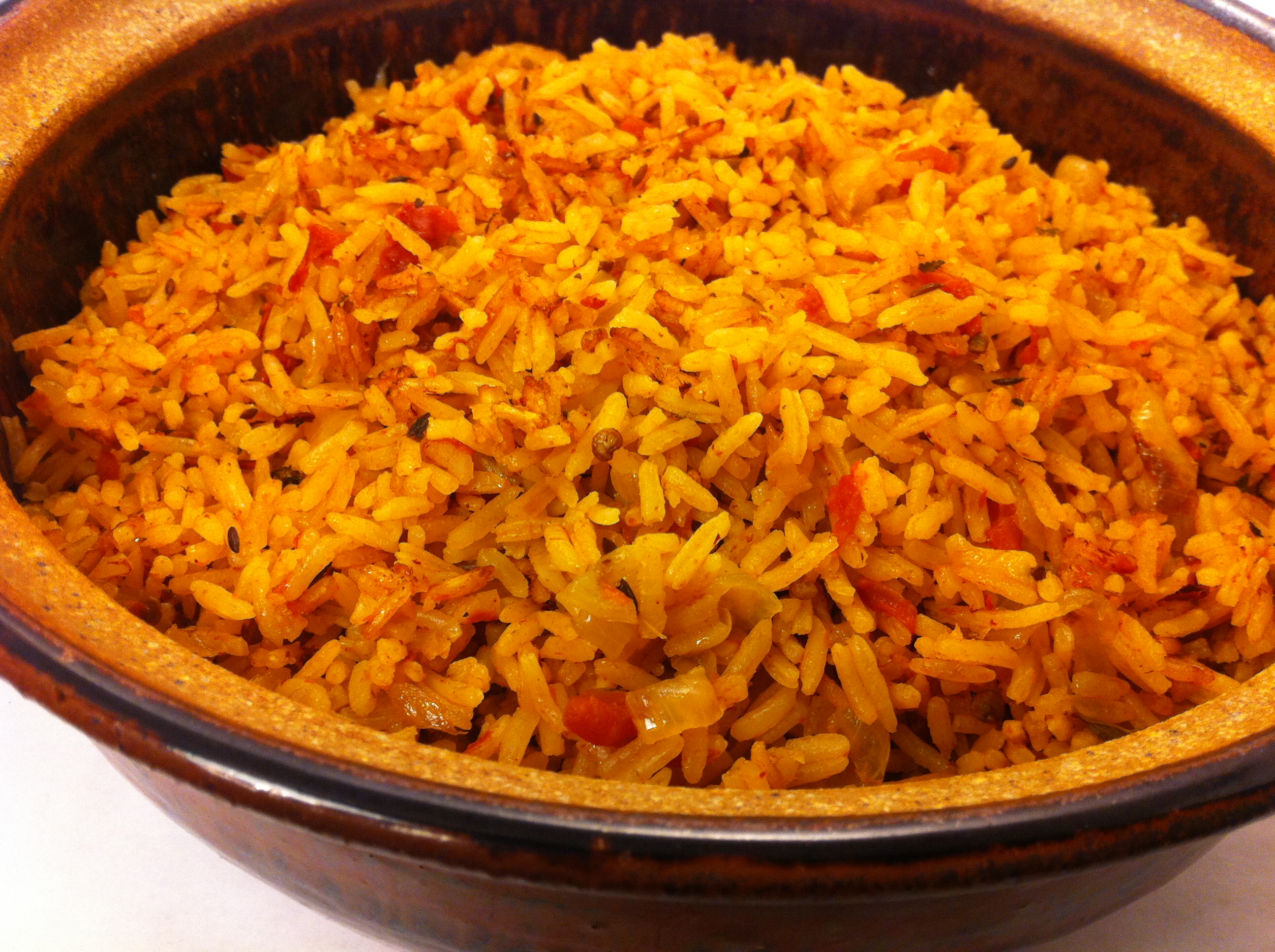 Here is a recipe for super flavorful Spanish rice. The chipotle peppers in adobe sauce give it smokiness and heat. I also toast the rice which enhances the flavors, but I’m not sure why!