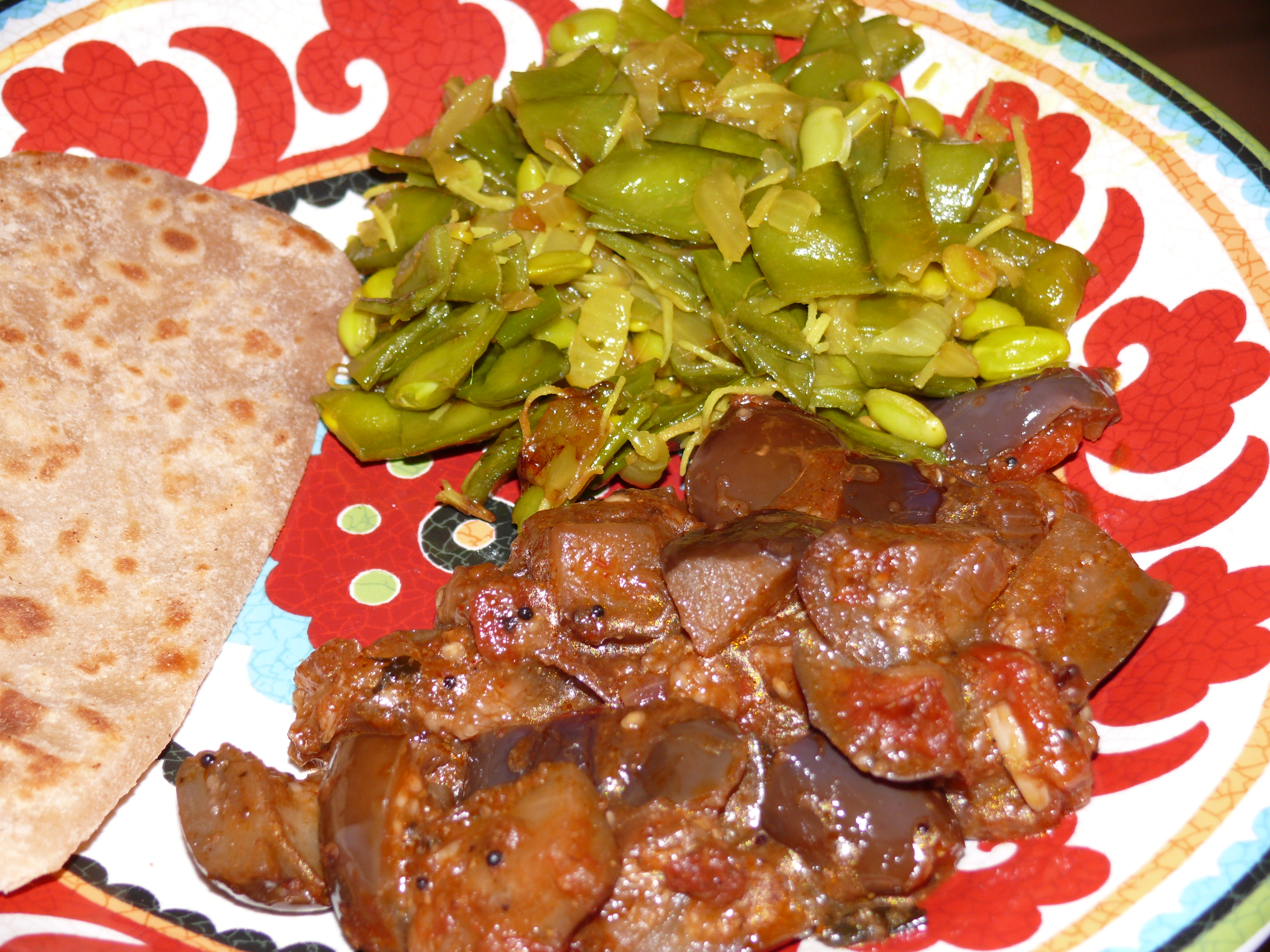 We had this with simple Indian broad beans with coconut, whole wheat paratha (frozen from the Indian market), and yogurt.