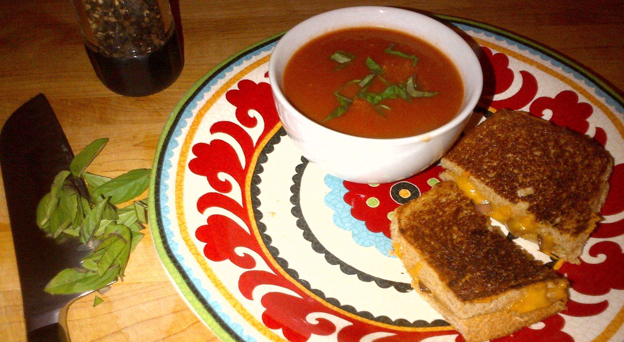 Last night was about simple American comfort food. Tomato soup with no fuss grilled cheese sandwiches. And finally my husband likes a homemade tomato soup! He normally only likes ones like Campbells, none of these nice chunky tomato soups. So I tried to make a homemade thin sweet version.