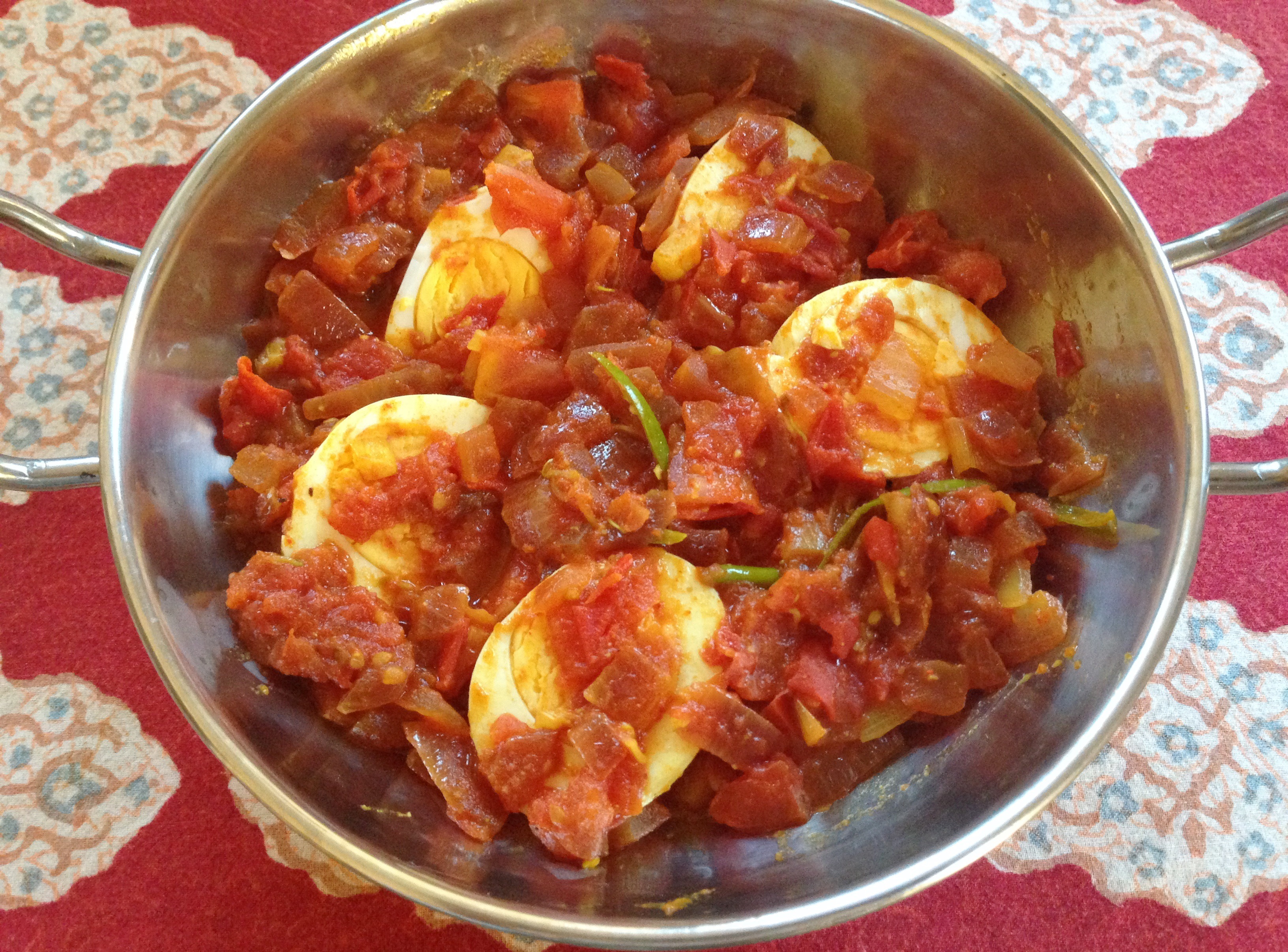 Love this simple tomatoey egg curry. I was actually thinking about making a Burmese egg curry from Naomi Duguid’s Burma: Rivers of Flavor but there are so few ingredients, a main one being fish sauce, so I made an Indian version with cumin powder instead. There are also more onions in this (rather than a few shallots). The simplicity and tomatoey-ness is similar 🙂