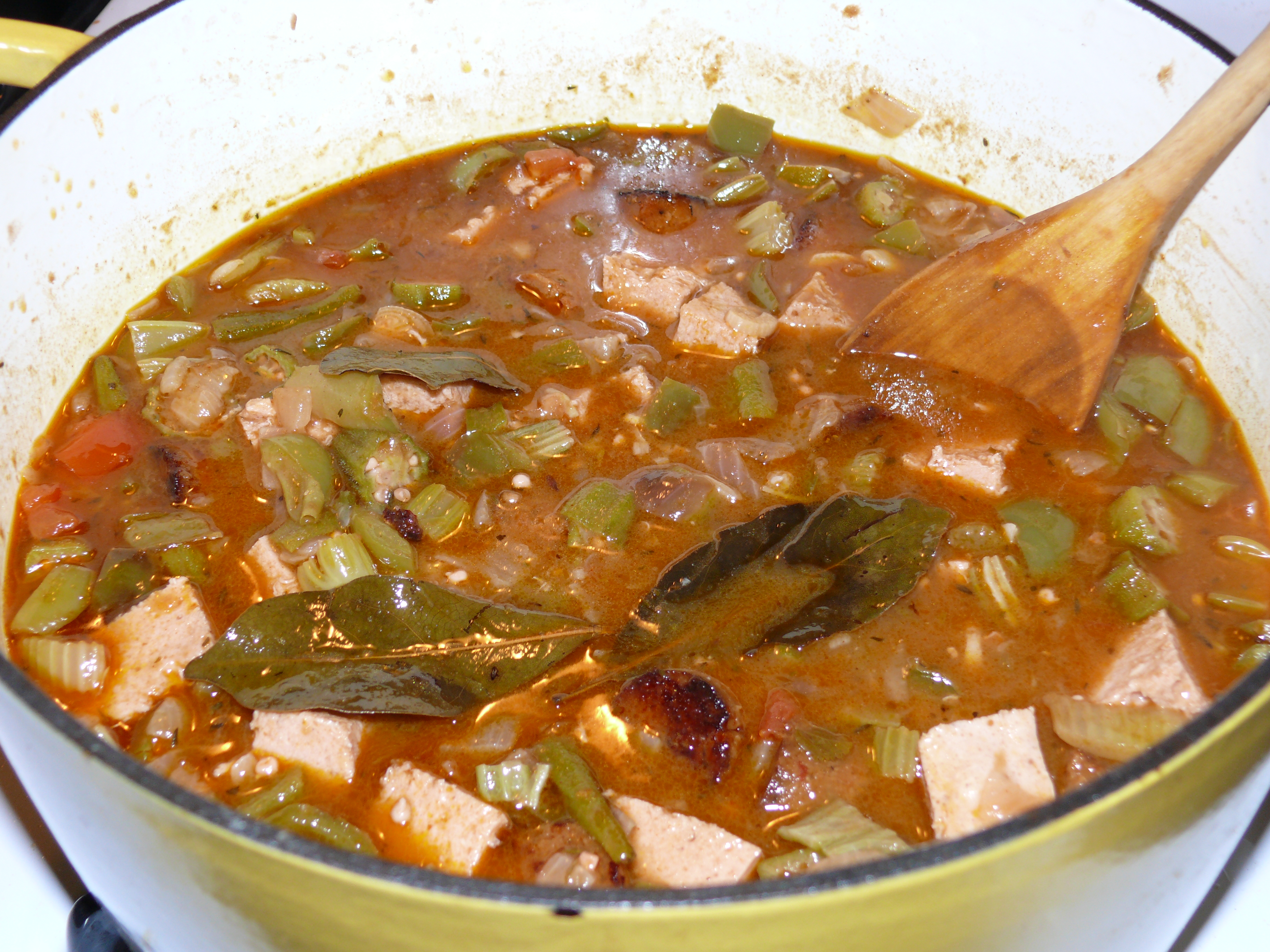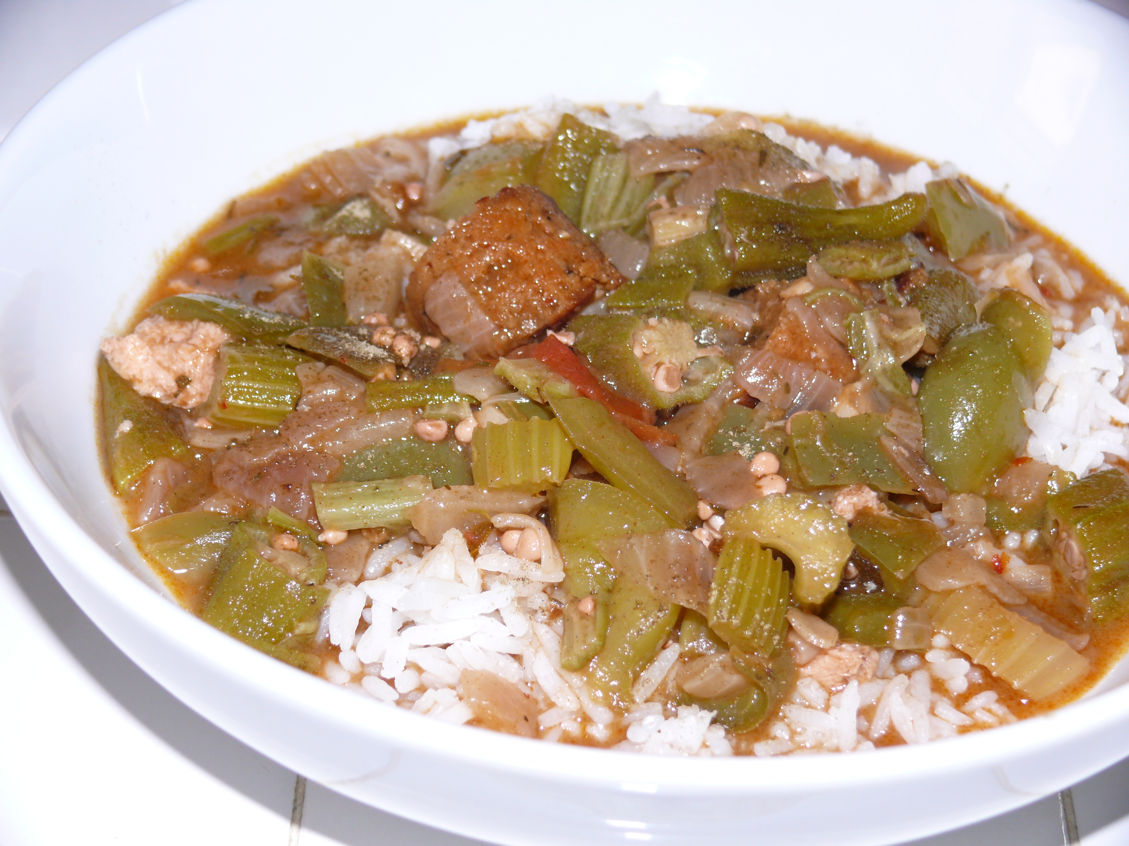 I’ve been meaning to make a vegetarian gumbo for a long while and finally it happened! I’m so glad too because it came out really nice! I used this recipe with okra instead of the mushrooms. I just love okra in gumbo! I added a tomato too because I really like the freshness tomato gives a stew.