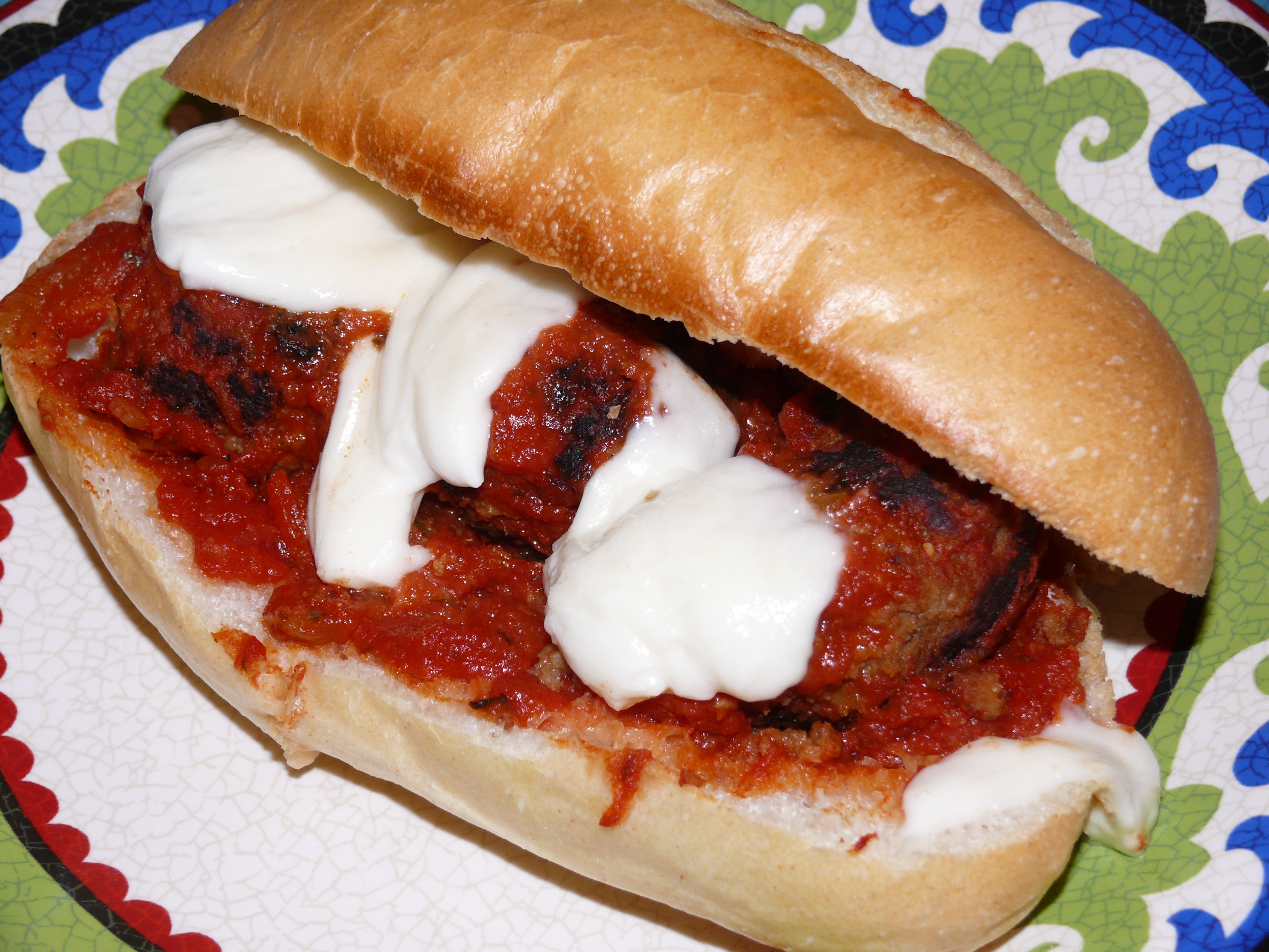 - Open hoagie roll and top with meatballs and lots of marina. Top with mozzarella.
